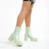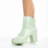 Libbie zöld lakkozott női csizma, műbőrből készült