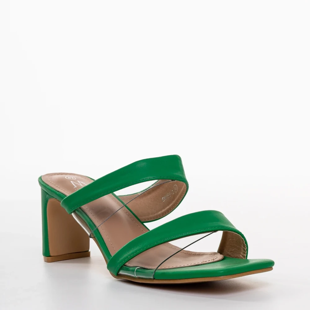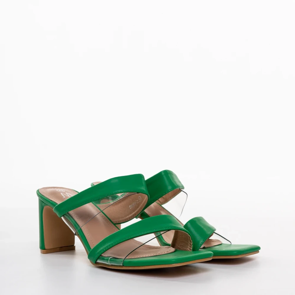 Cameron zöld női papucs sarokkal, műbőrből készült