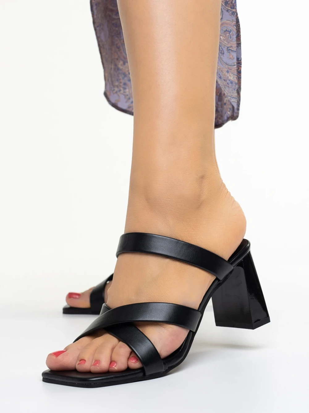 Dennise fekete női papucs sarokkal, műbőrből készült