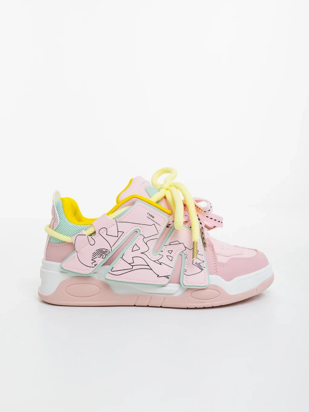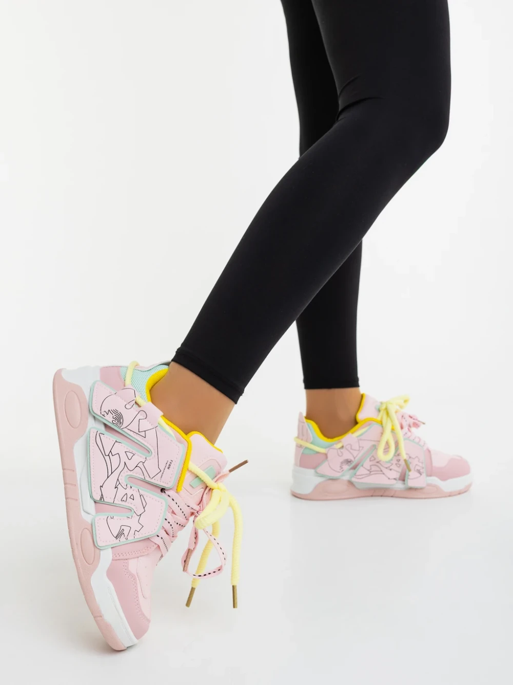 Osiana rózsaszin és sárga női sportcipő ökológiai bőrből Termék leírás