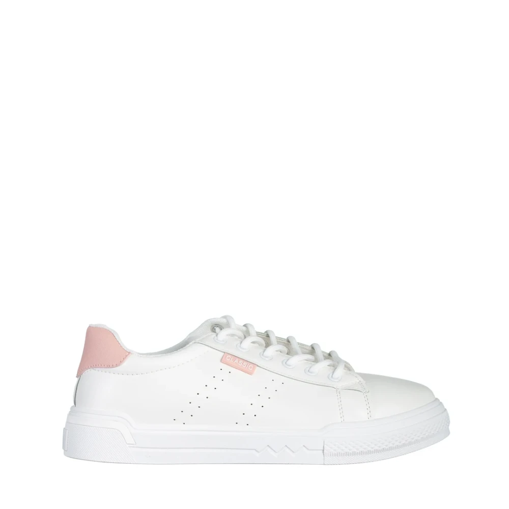 Ruba fehér és rózsaszín női sportcipő, textil anyagból készült