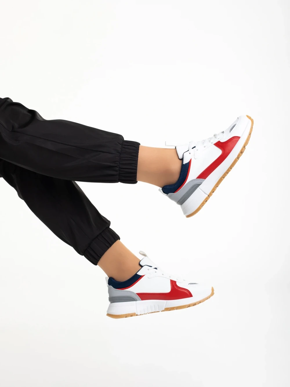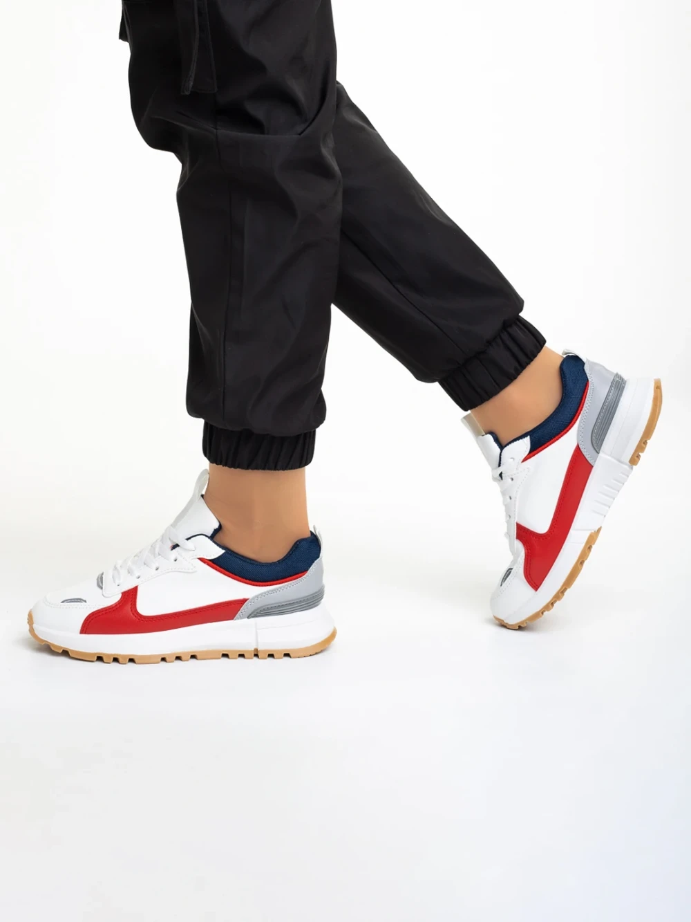 Jianna fehér és piros női sportcipő, műbőrből és textil anyagból készült Termék leírás