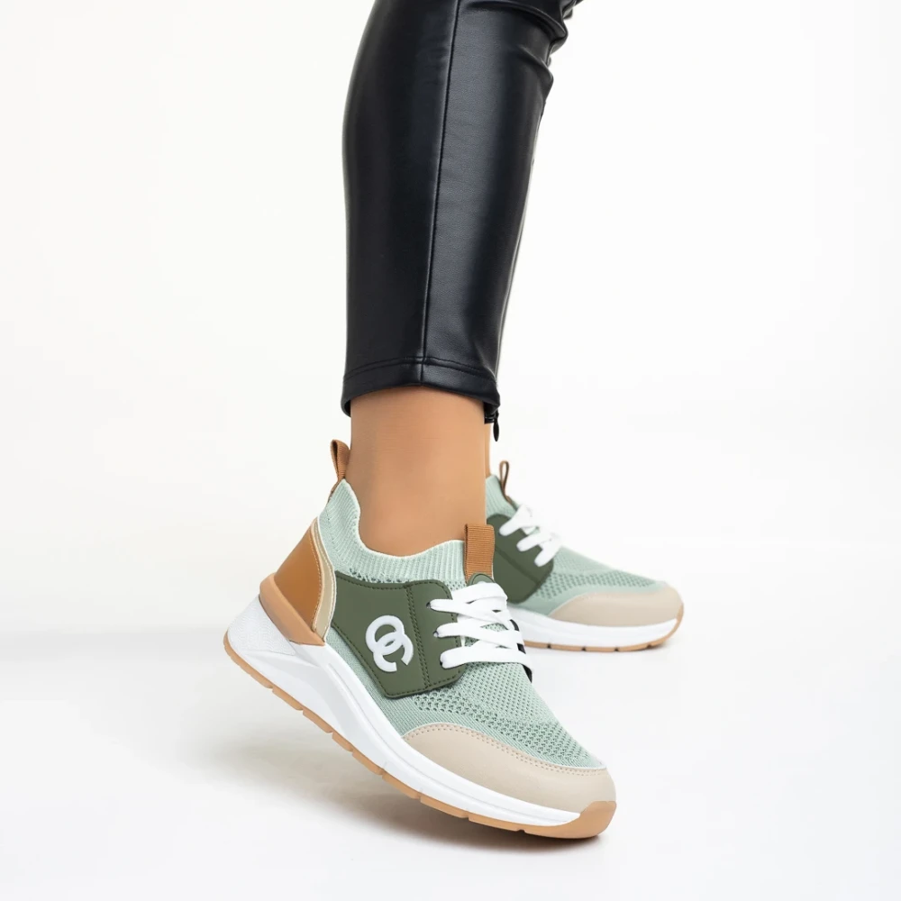 Nairobi zöld női sportcipő, műbőrből és textil anyagból készült