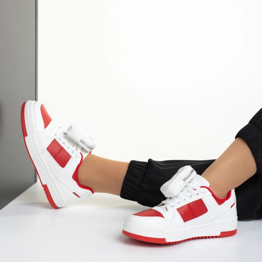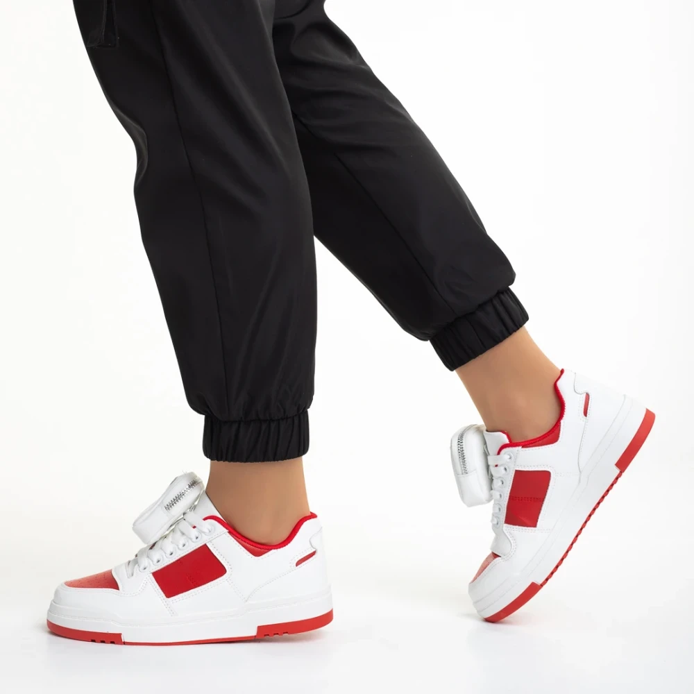 Inola fehér és piros női sportcipő, műbőrből készült Termék leírás