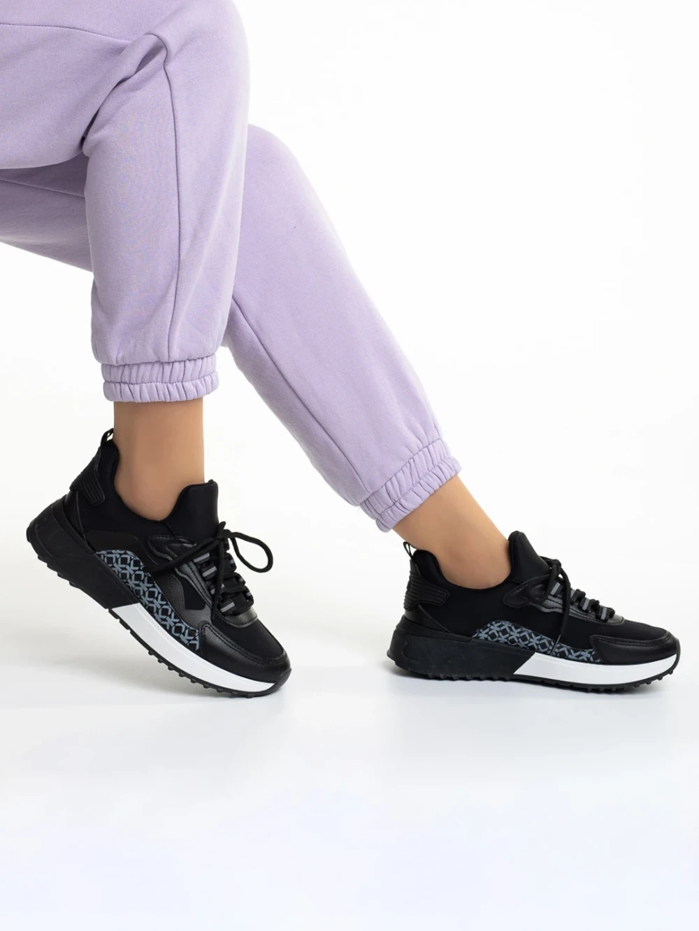 Marga fekete női sportcipő, műbőrből és textil anyagból készült