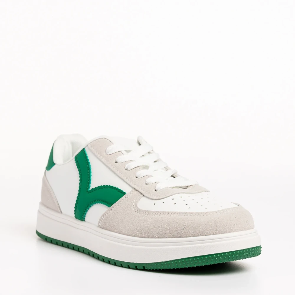 Criseida fehér és zöld női sportcipő, műbőrből készült