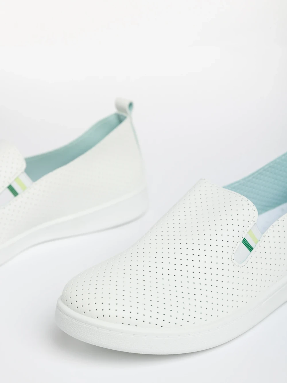 Amias fehér és zöld férfi sportcipő, műbőrből készült