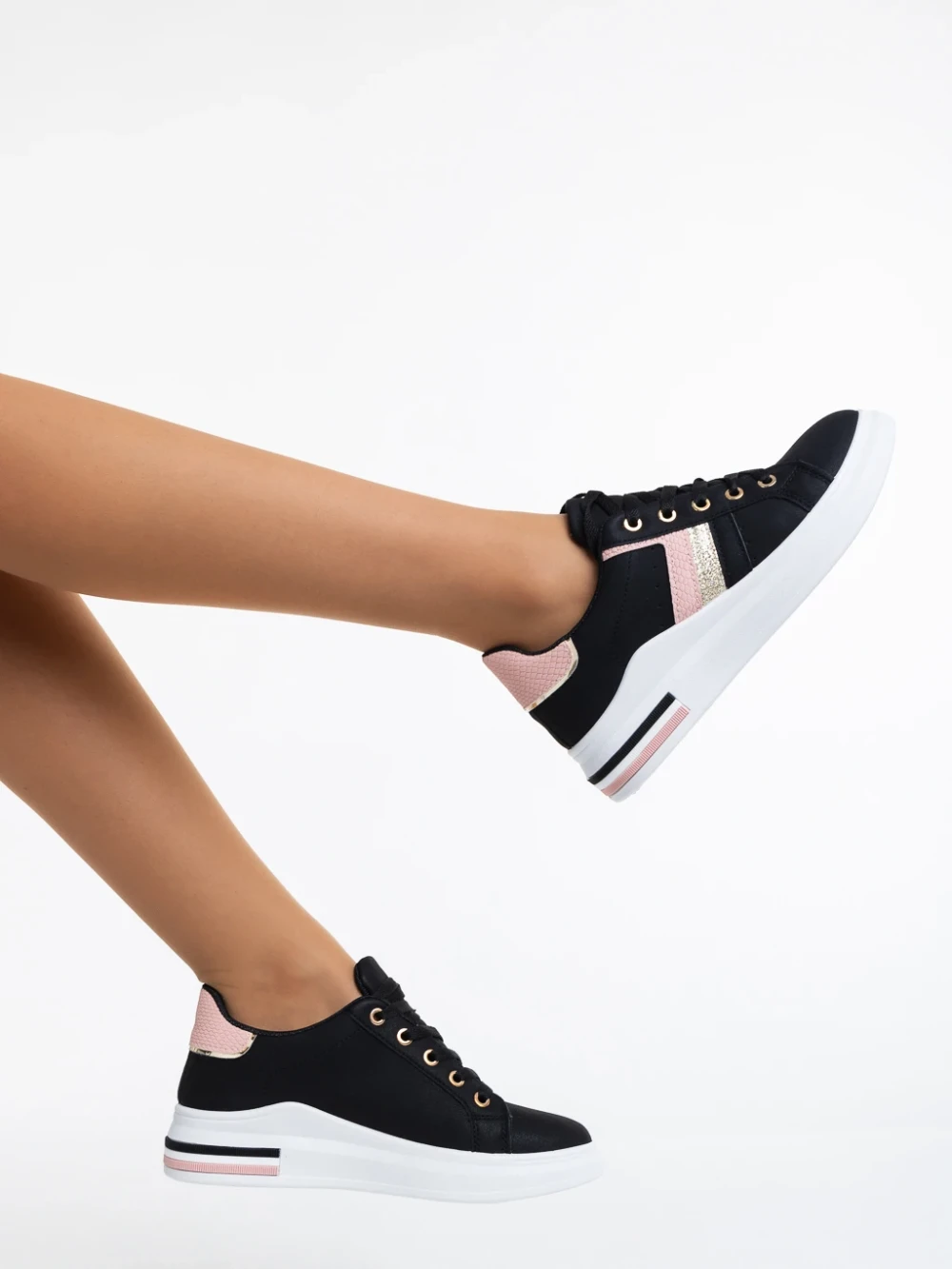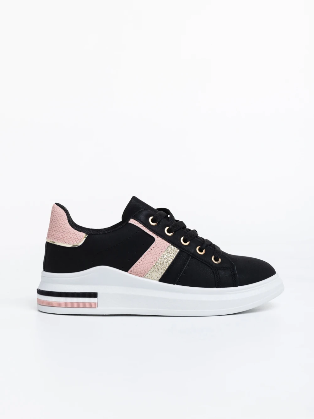 Sebrina fekete, női sport cipő, ökológiai bőrből