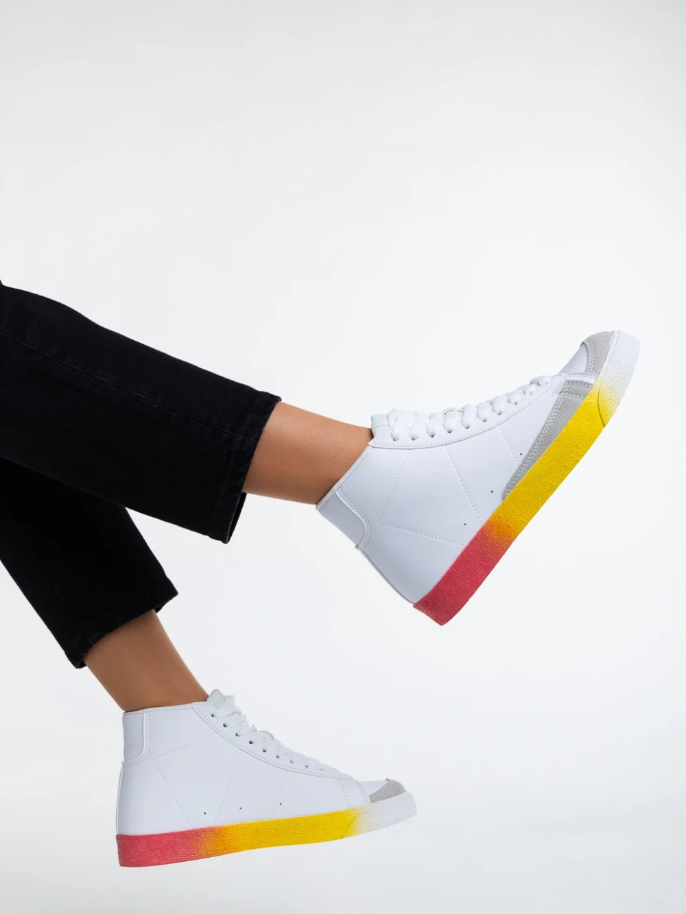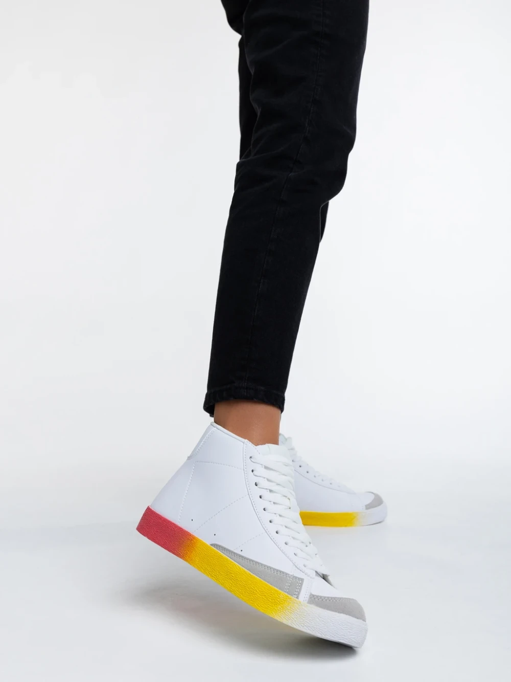 Kianna fehér és sárga, női sport cipő,  ökológiai bőrből