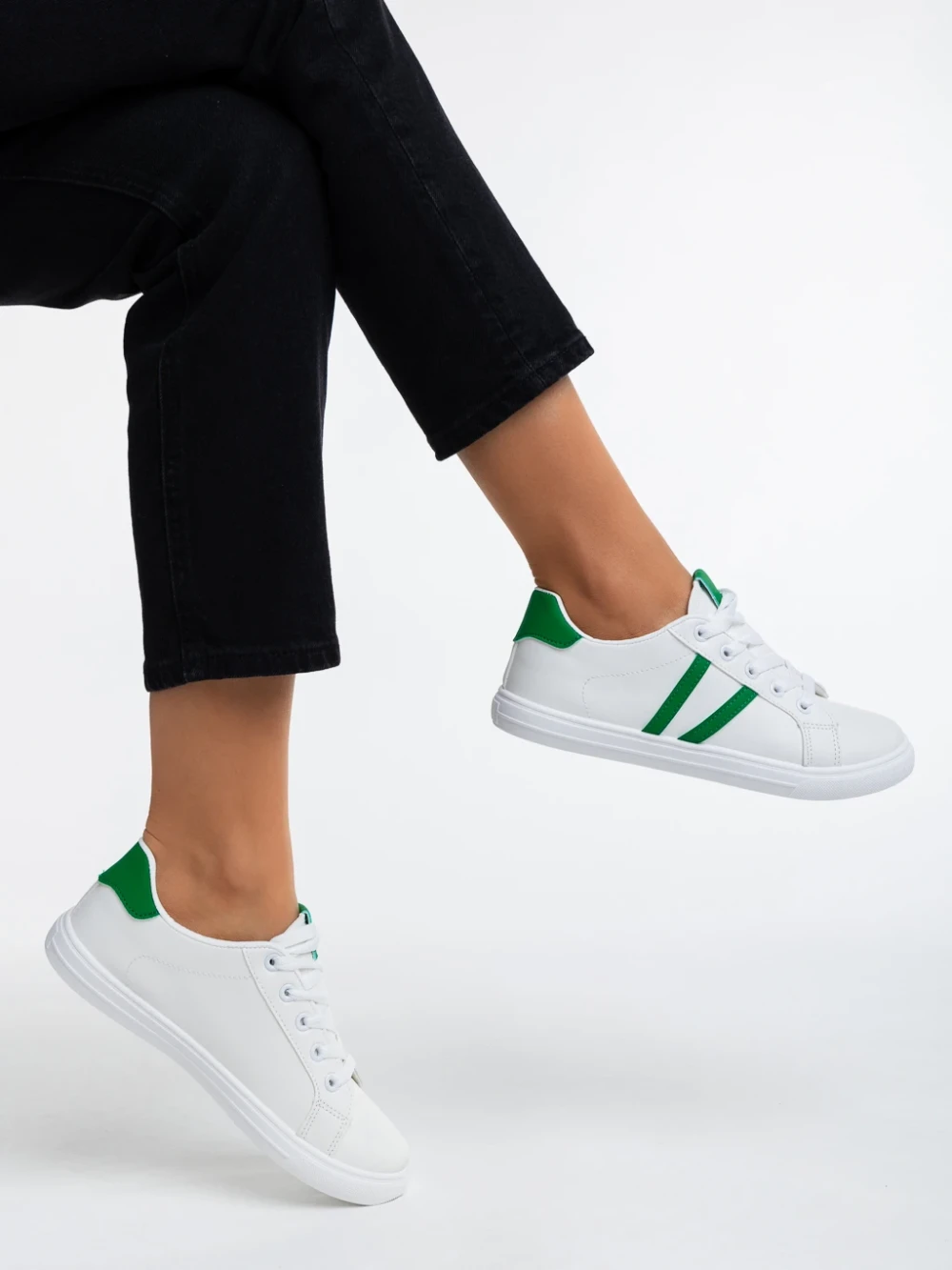 Virva fehér és zöld női sport cipő ökológiai bőrből