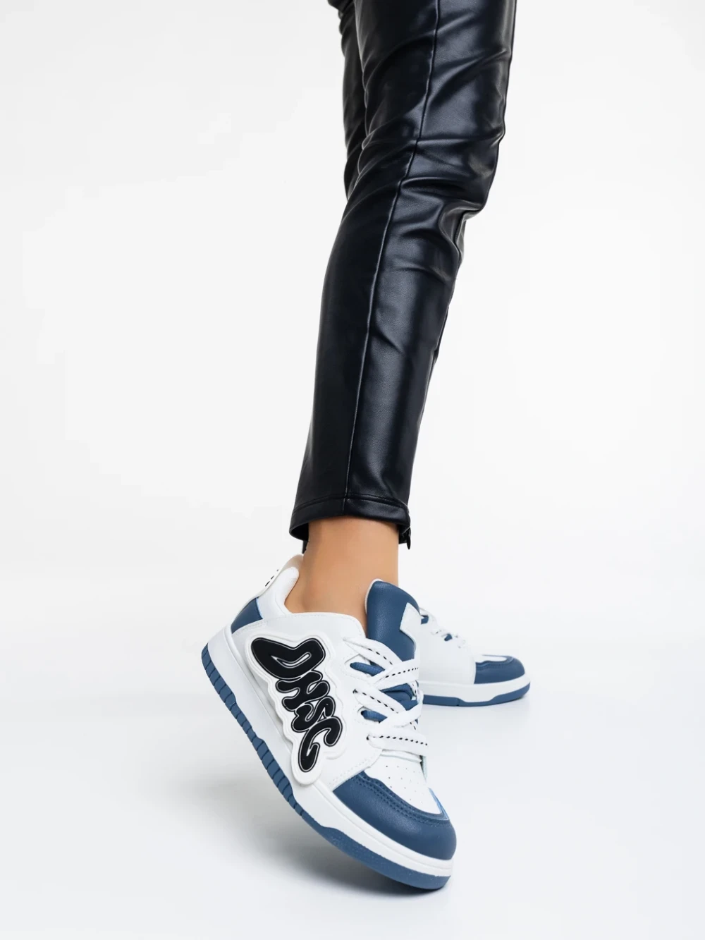 Azurine fehér és kék női sport cipő ökológiai bőrből