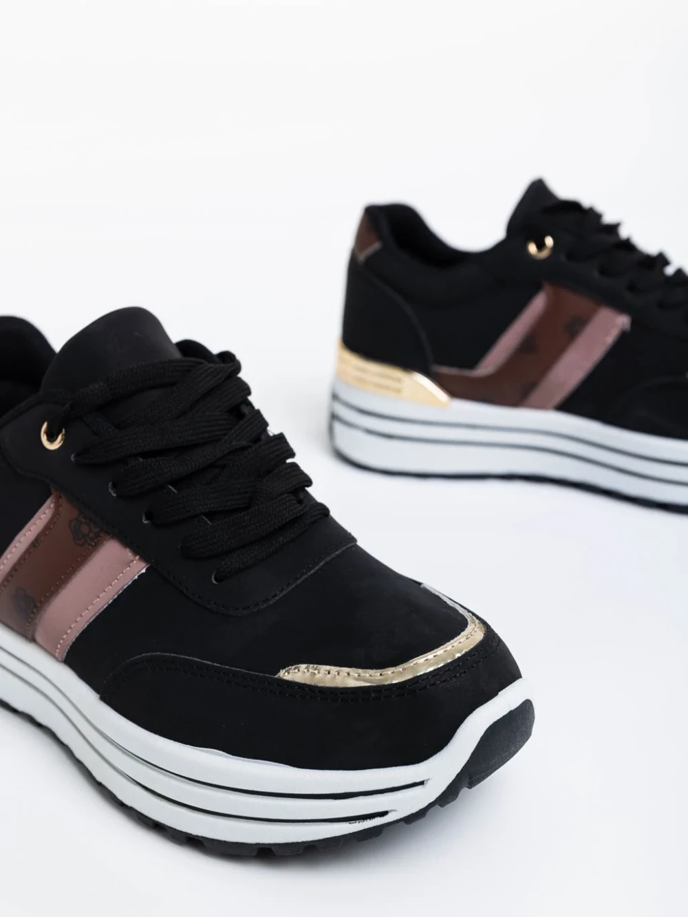 Loraina fekete női sport cipő textil anyagból Termék leírás