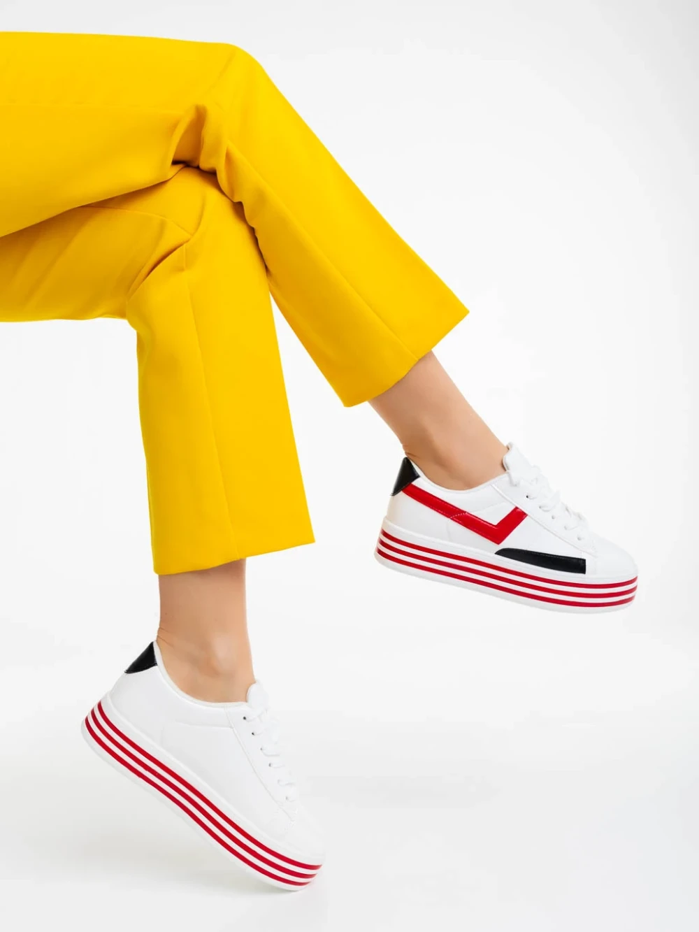 Gratiela fehér és piros női sportcipő ökológiai bőrből