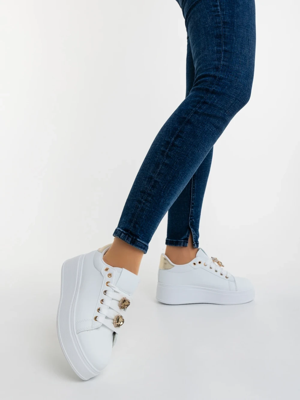 Lovely fehér és aranyszinű női sportcipő ökológiai bőrből