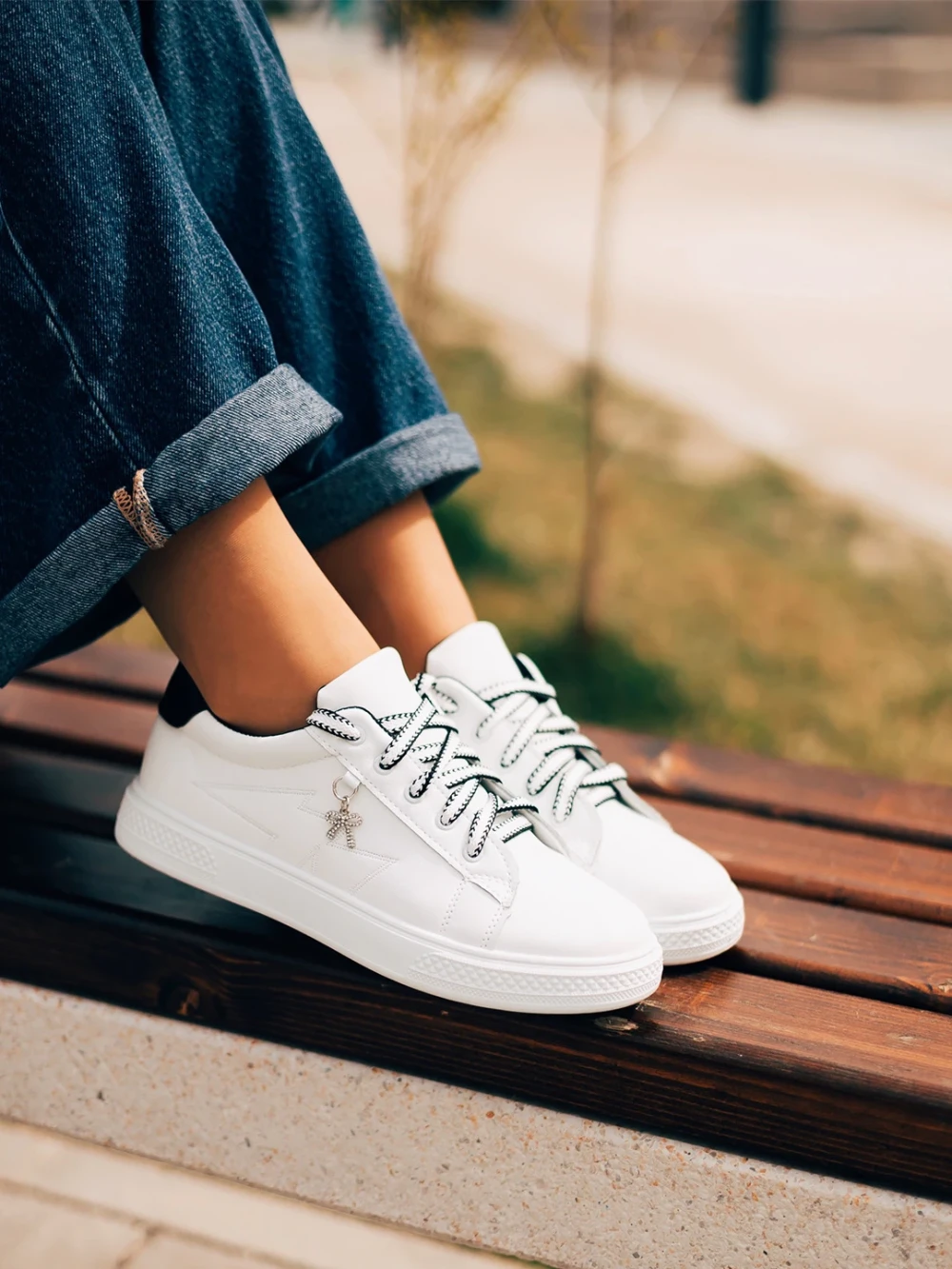 Catiopia fekete fehér női sportcipő ökológiai bőrből Termék leírás