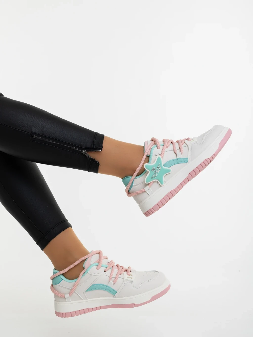 Serenza rózsaszin és kék női sportcipő ökológiai bőrből Termék leírás
