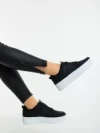 Sikara fekete fehér női sportcipő ökológiai bőrből