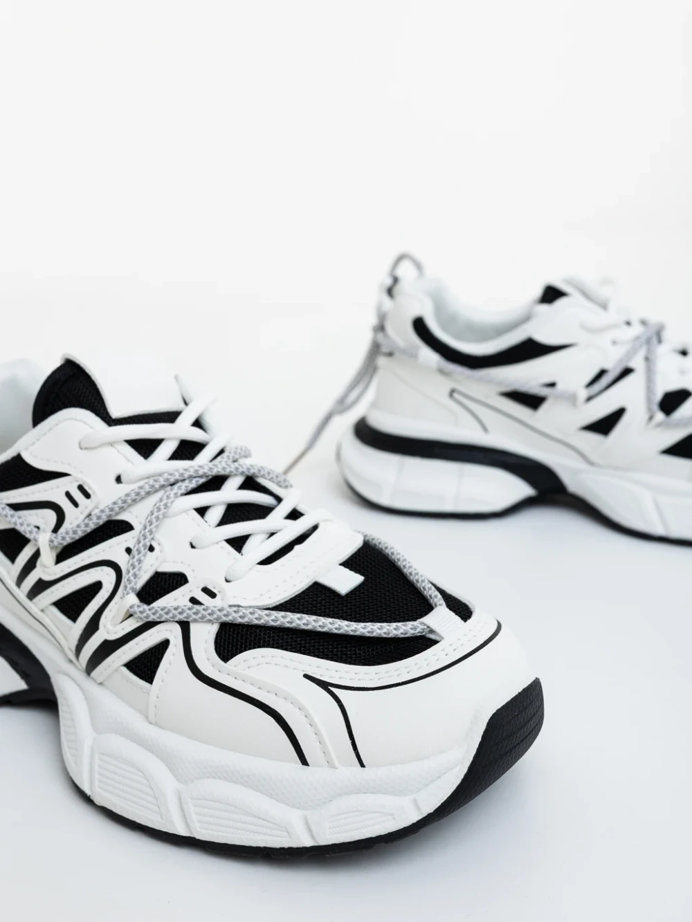 Lotiva fekete fehér női sportcipő ökológiai bőrből és textil anyagból