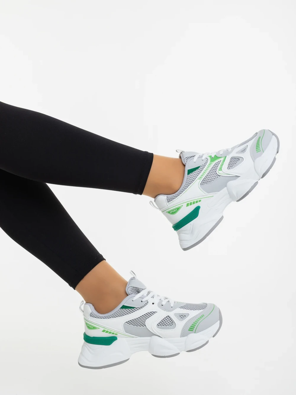 Zehara fehér és zöld női sportcipő ökológiai bőrből és textil anyagból