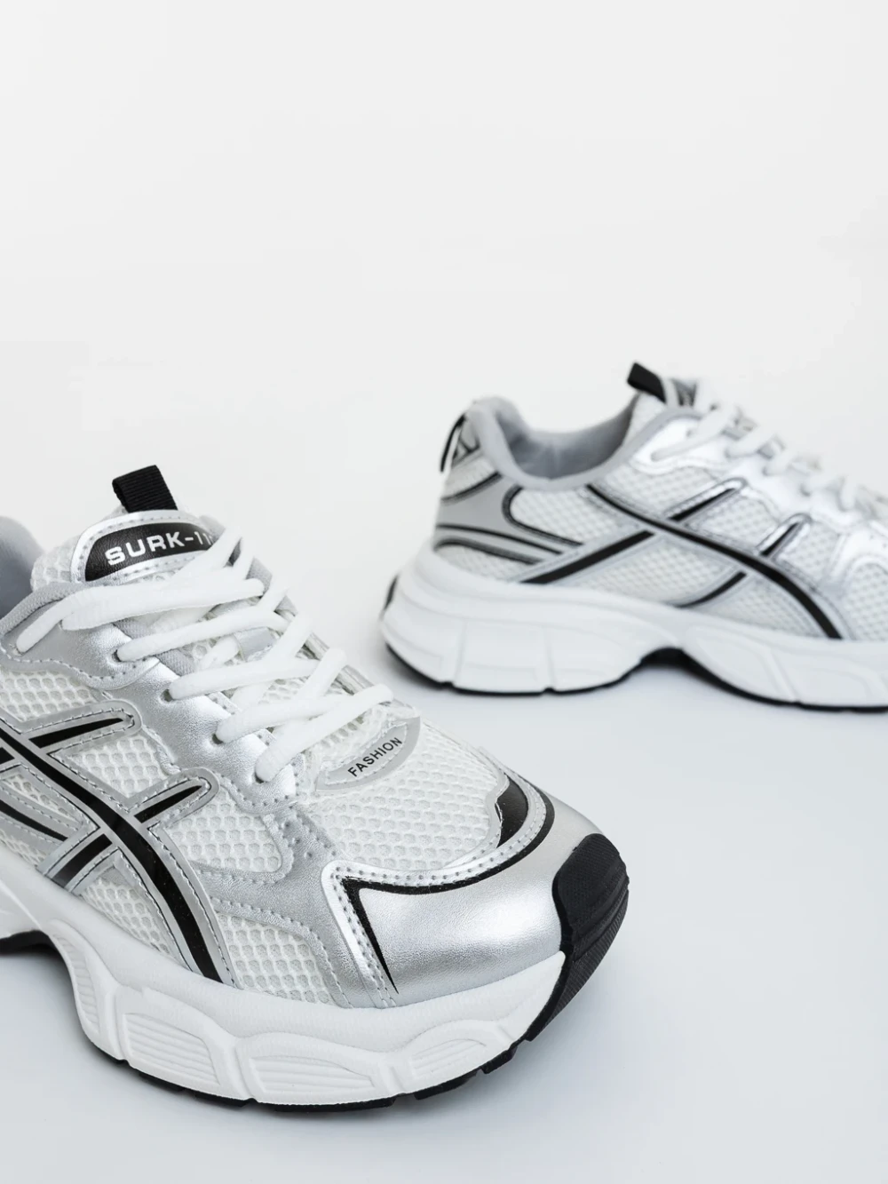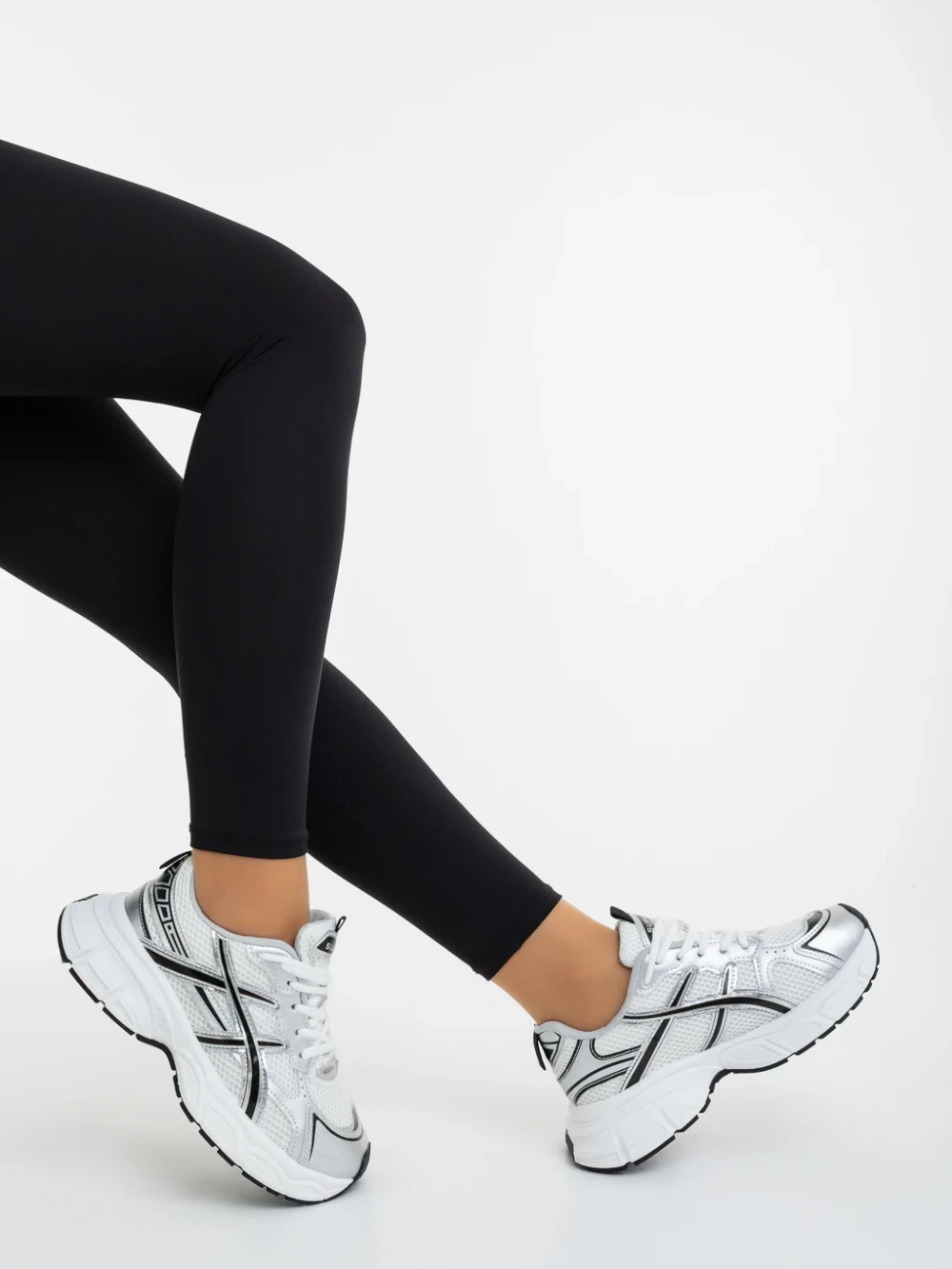 Elle fehér és ezüstszinű női sportcipő ökológiai bőrből és textil anyagból