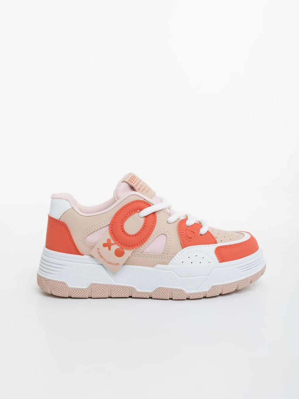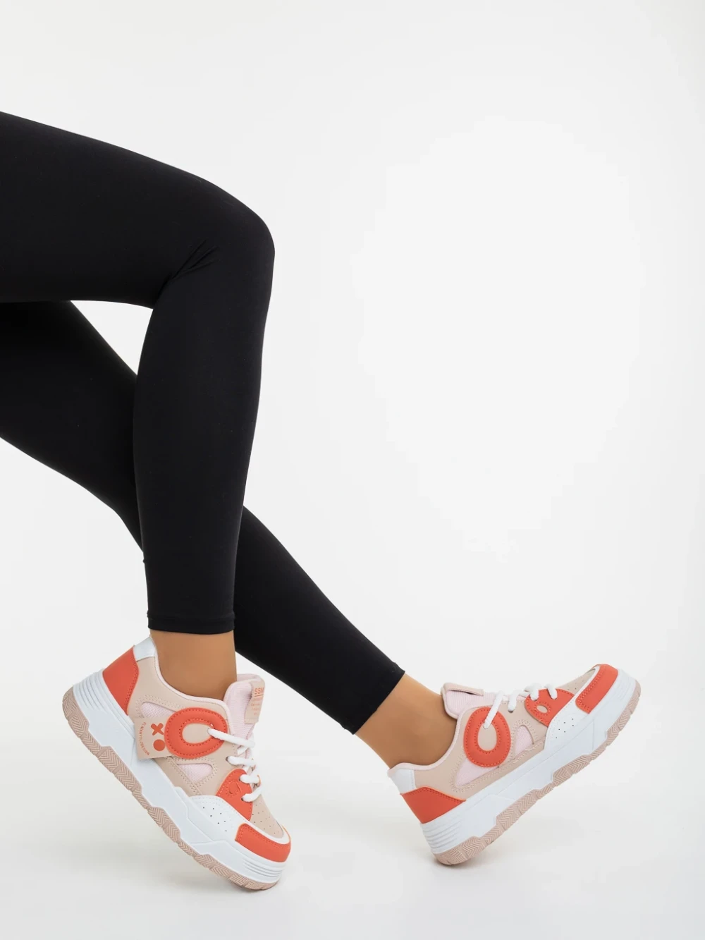 Demana bézs és narancssárga női sportcipő ökológiai bőrből és textil anyagból