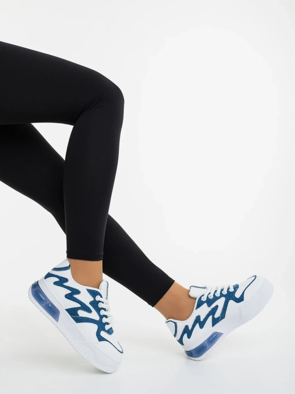 Sindria fehér és kék női sportcipő ökológiai bőrből és textil anyagból