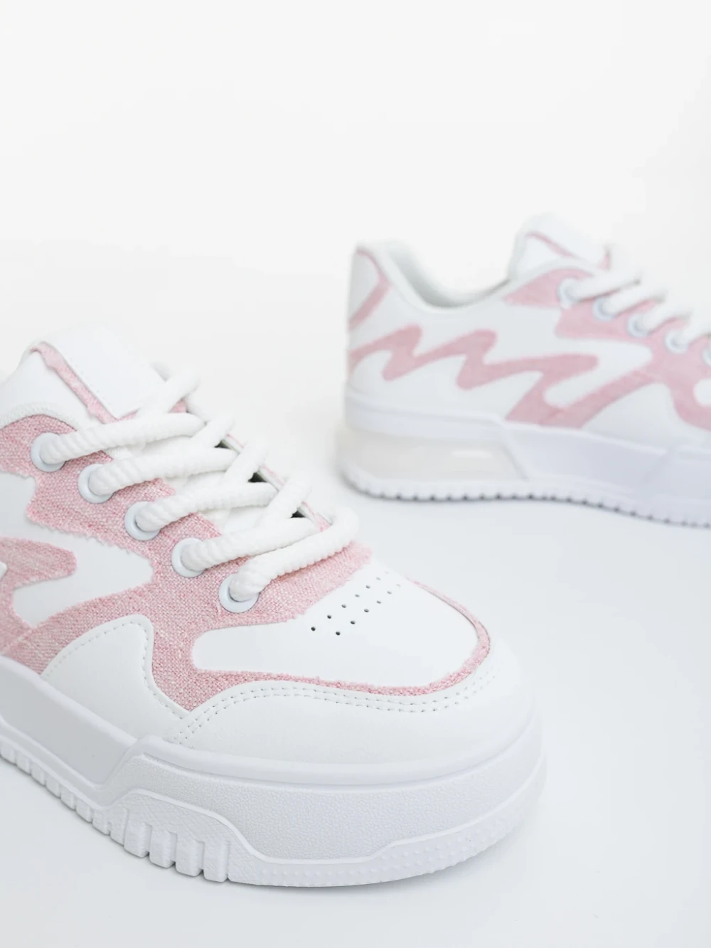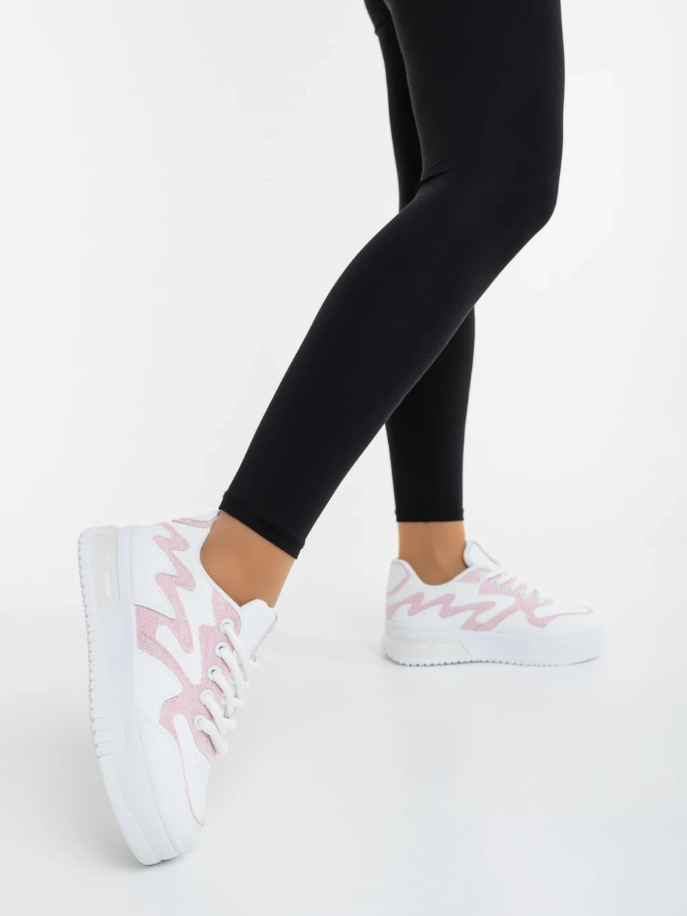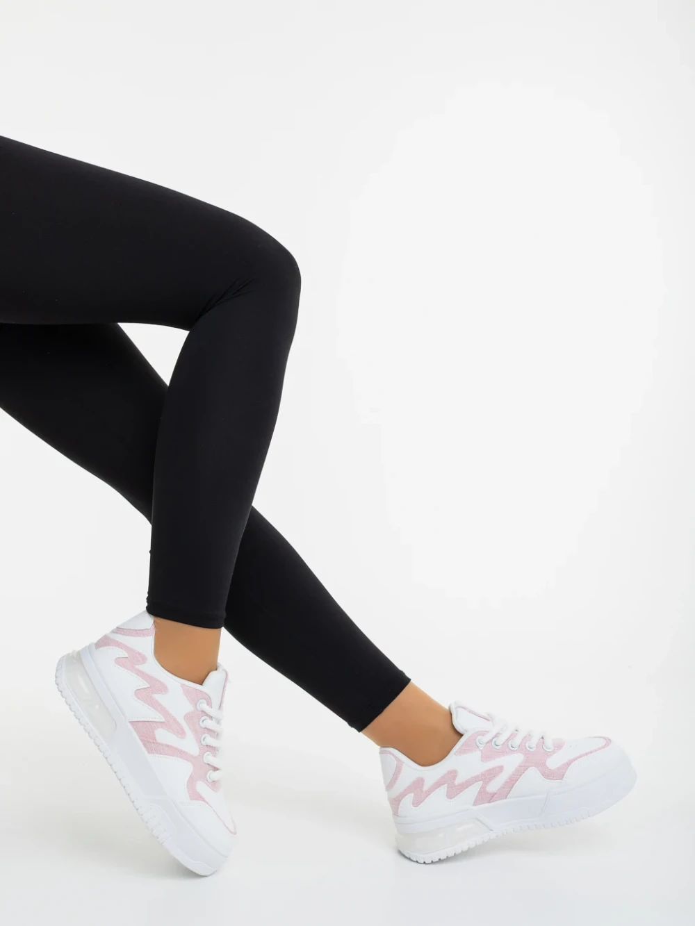 Sindria fehér és rózsaszin női sportcipő ökológiai bőrből és textil anyagból