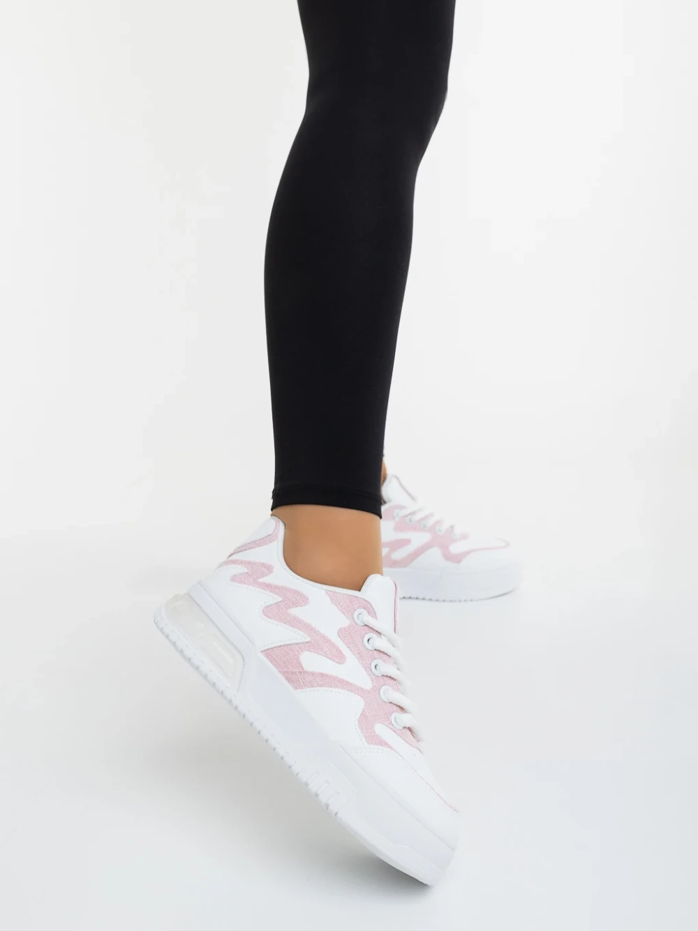 Sindria fehér és rózsaszin női sportcipő ökológiai bőrből és textil anyagból Termék leírás