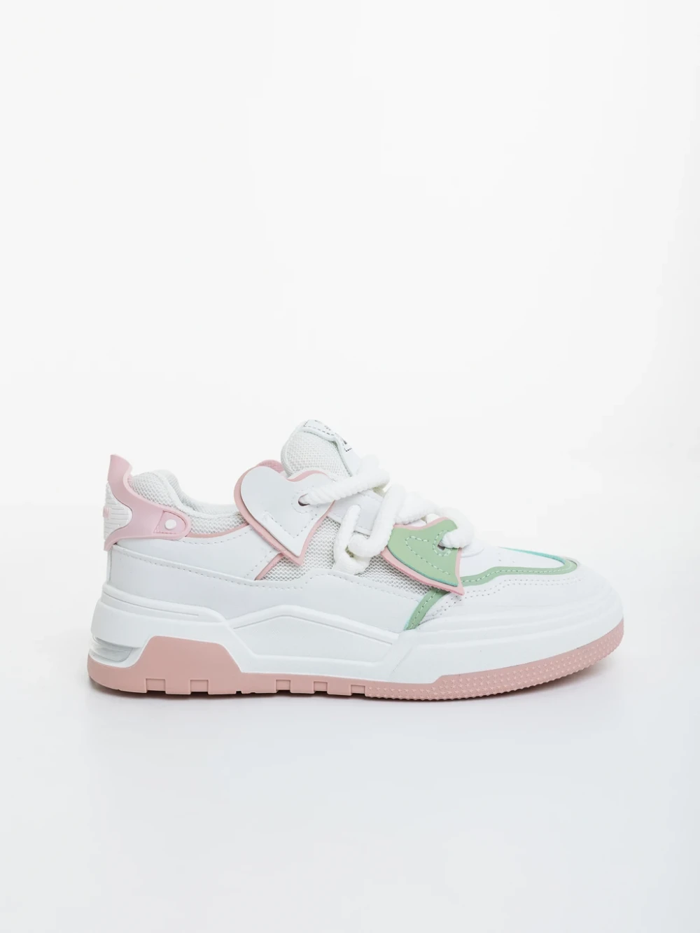 Lalona fehér és rózsaszin női sportcipő ökológiai bőrből és textil anyagból