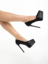Malinda fekete női cipő sarokkal, műbőrből készült Termék leírás