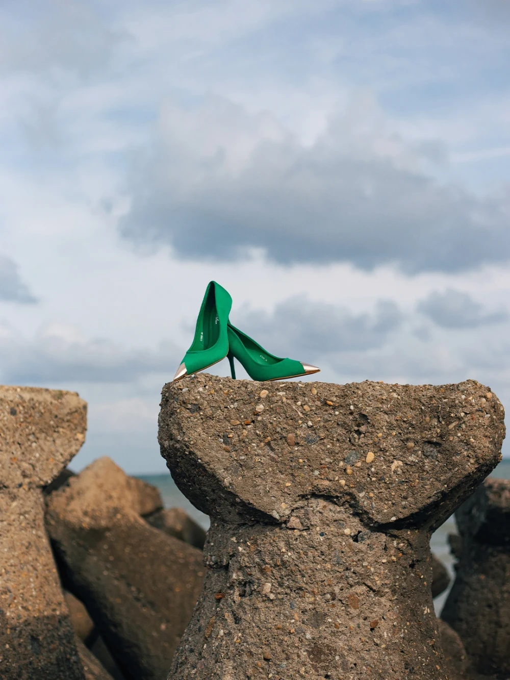 Melany zöld női cipő sarokkal, textil anyagból készült Termék leírás