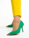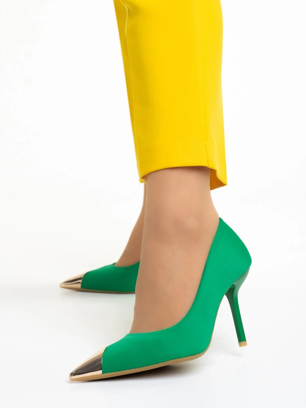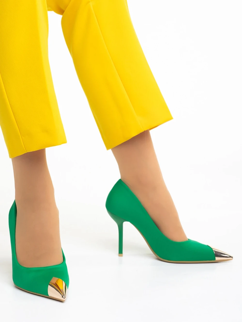 Melany zöld női cipő sarokkal, textil anyagból készült