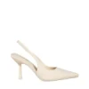 Oveta bézs női cipő sarokkal, textil anyagból készült