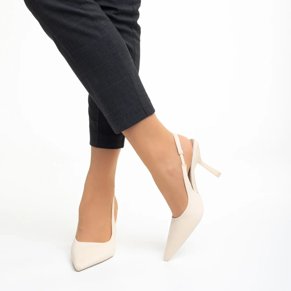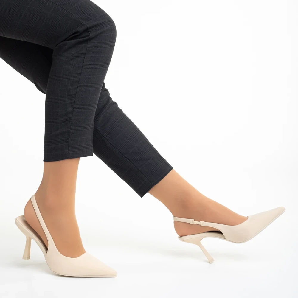 Oveta bézs női cipő sarokkal, textil anyagból készült Termék leírás