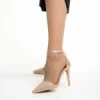 Olamide bézs női cipő sarokkal, textil anyagból készült