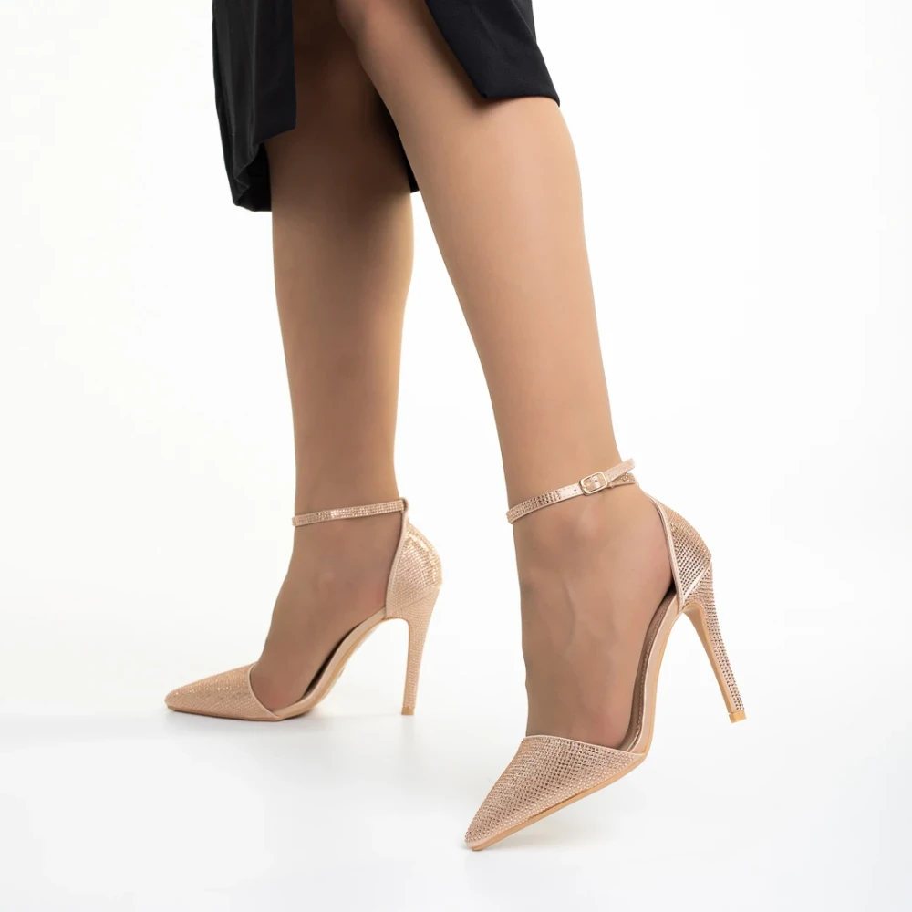 Olamide bézs női cipő sarokkal, textil anyagból készült Termék leírás