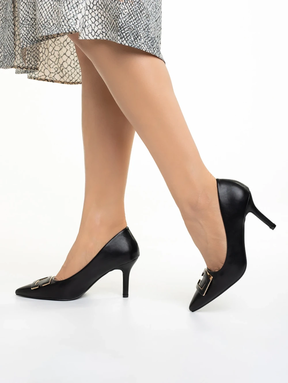 Katla fekete női cipő sarokkal, műbőrből készült Termék leírás