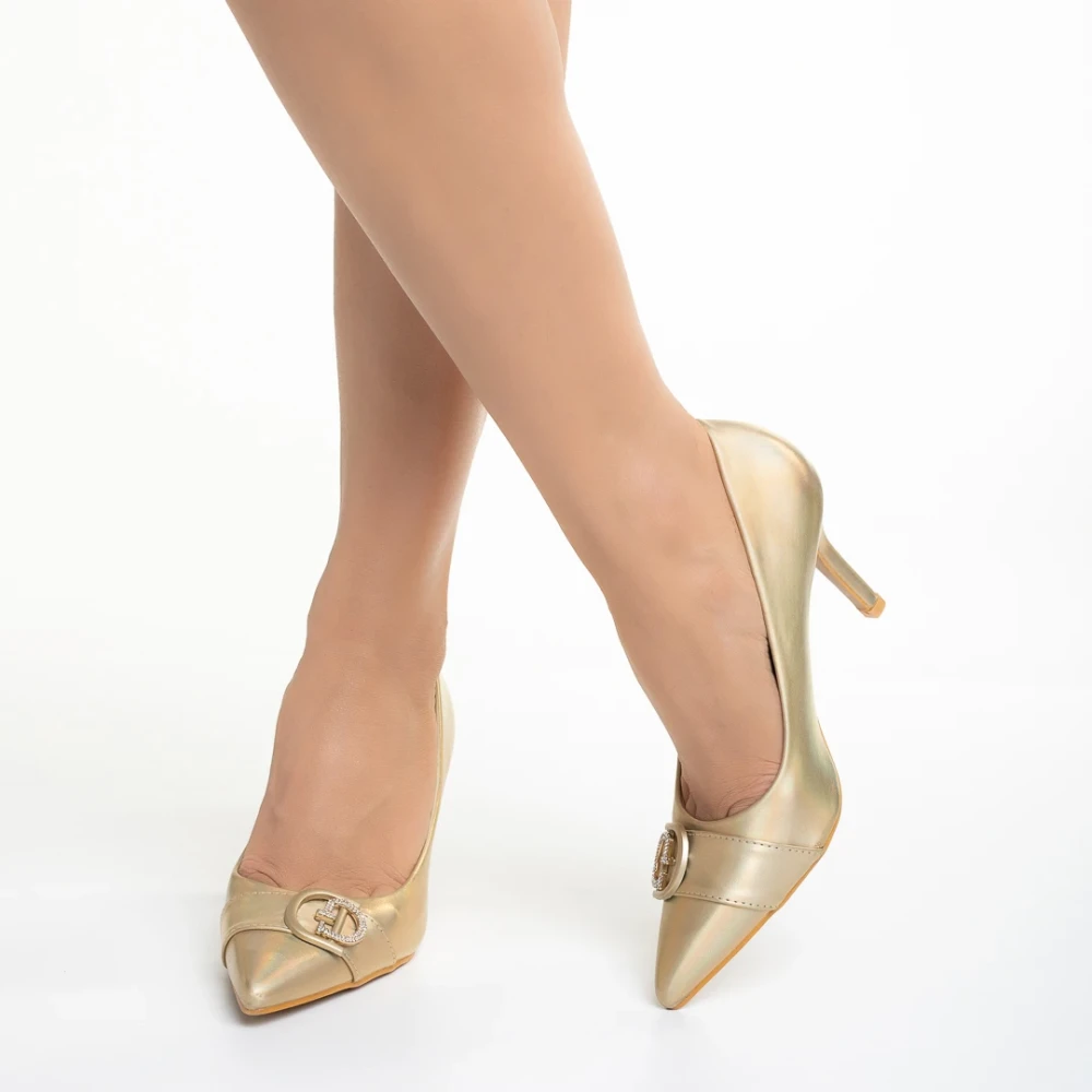 Yuka arany női cipő sarokkal, műbőrből készült