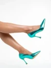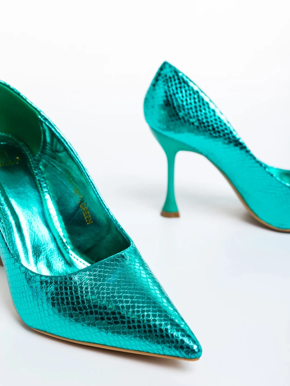 Emalyn zöld női cipő sarokkal, lakkozott műbőrből készült