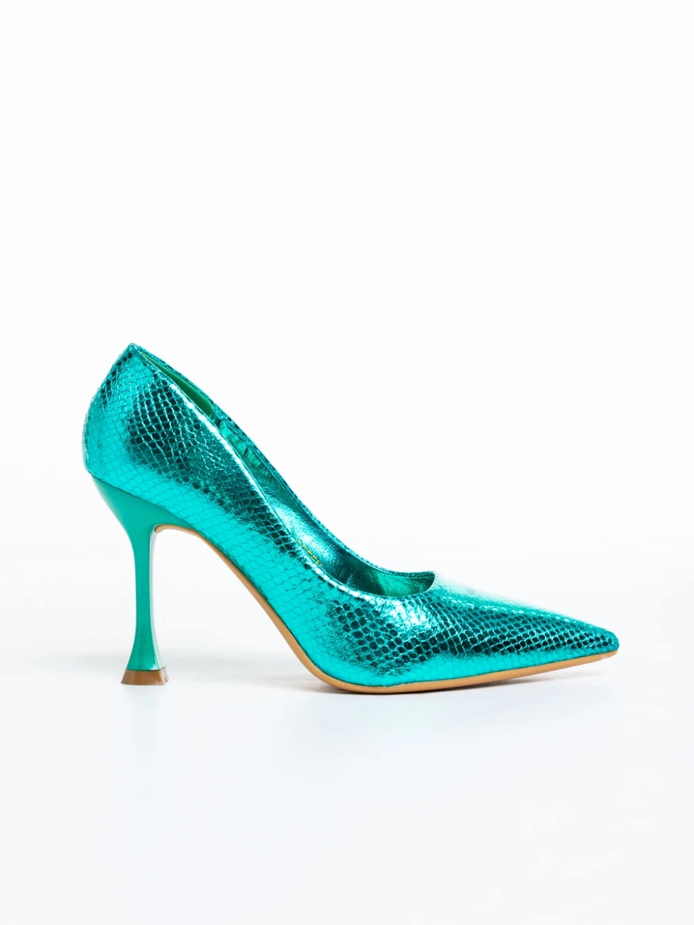 Emalyn zöld női cipő sarokkal, lakkozott műbőrből készült Termék leírás