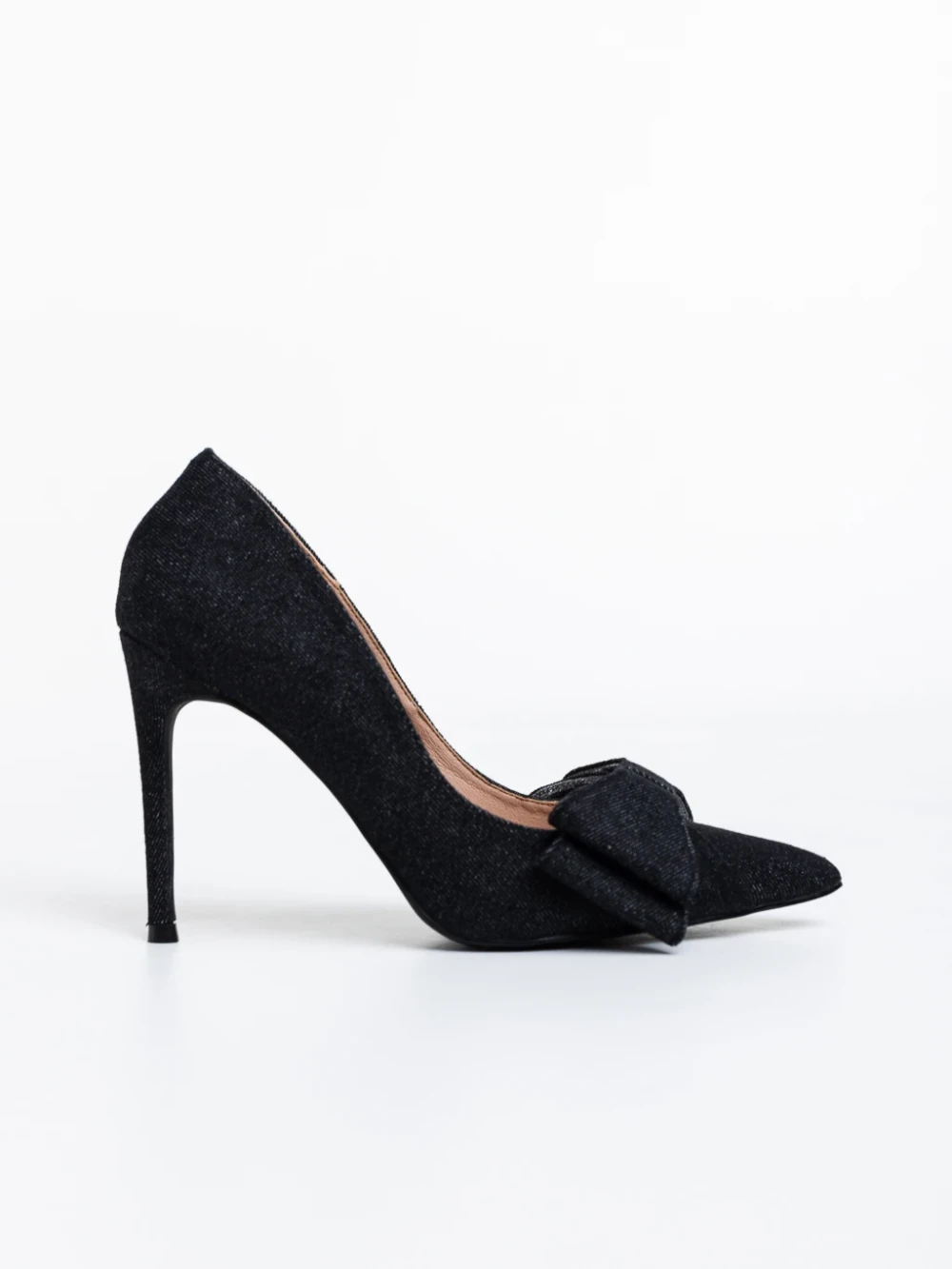Senovia fekete, magassarkú cipő, textil anyagból