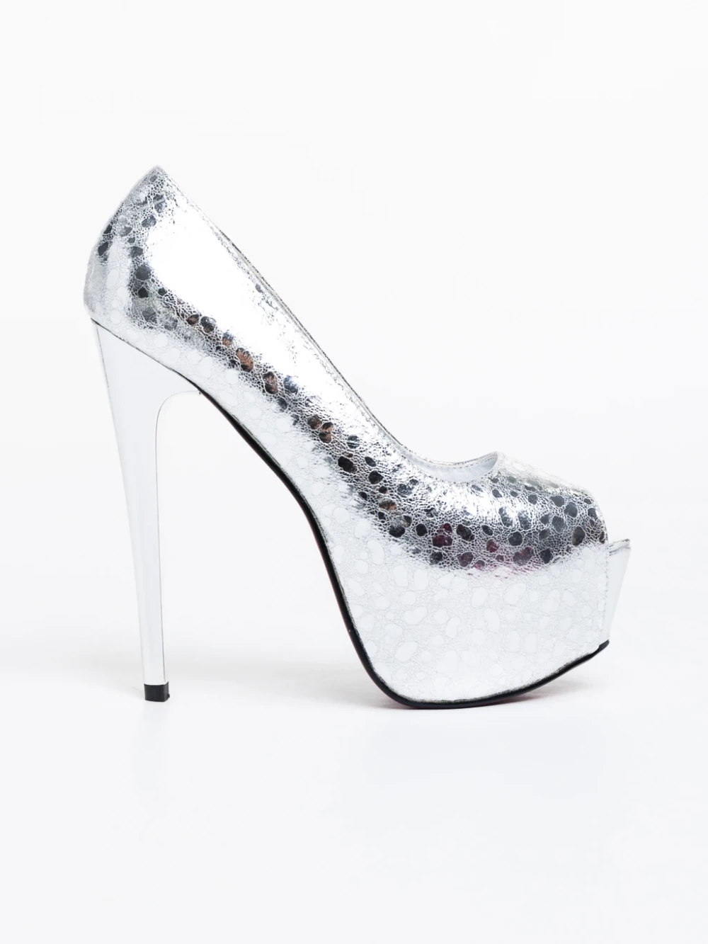 Granya ezüstszínű, női magassarkú cipő, ökológiai bőrből