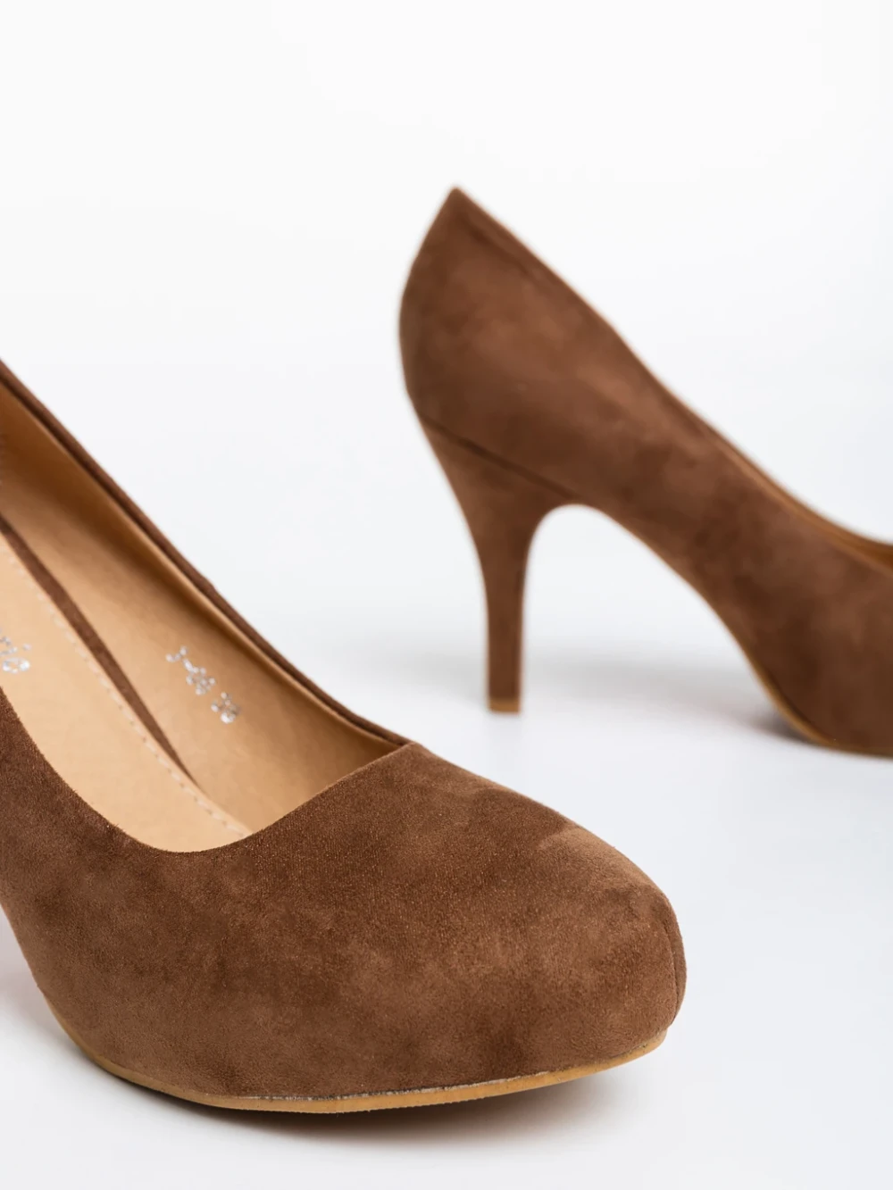 Neelima khaki, női magassarkú cipő, textil anyagból