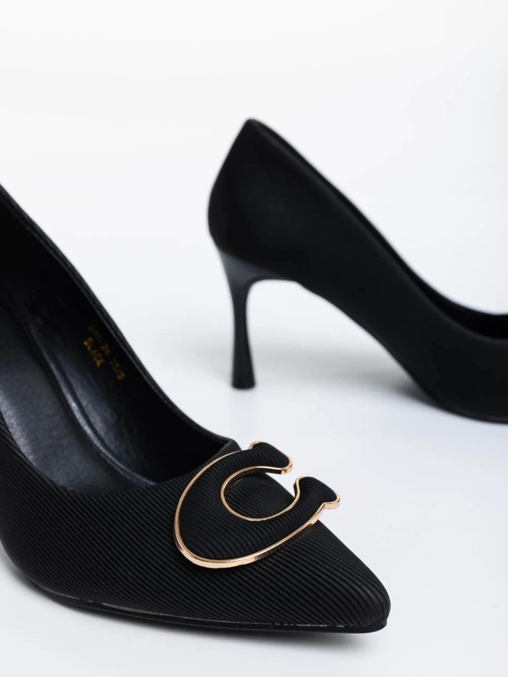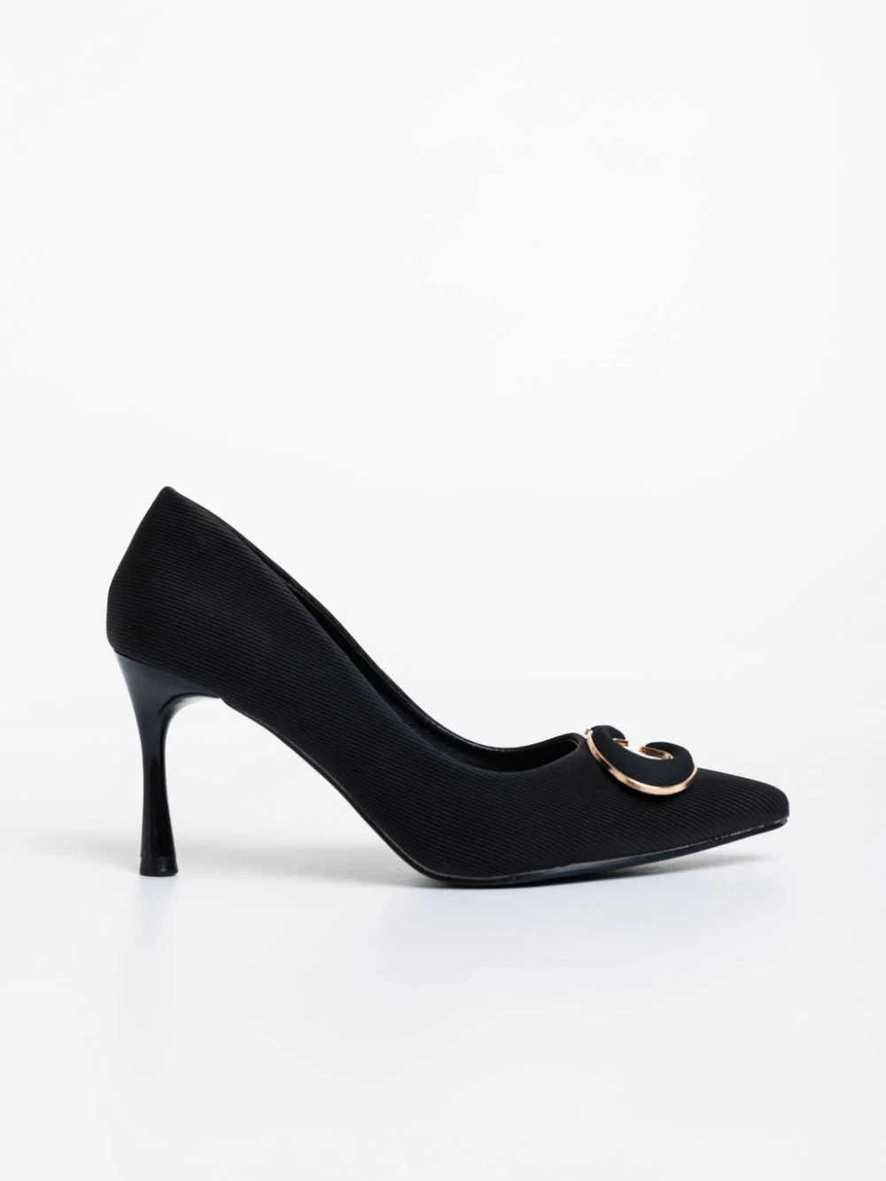 Tacey fekete női magassarkú cipő textil anyagból Termék leírás