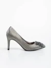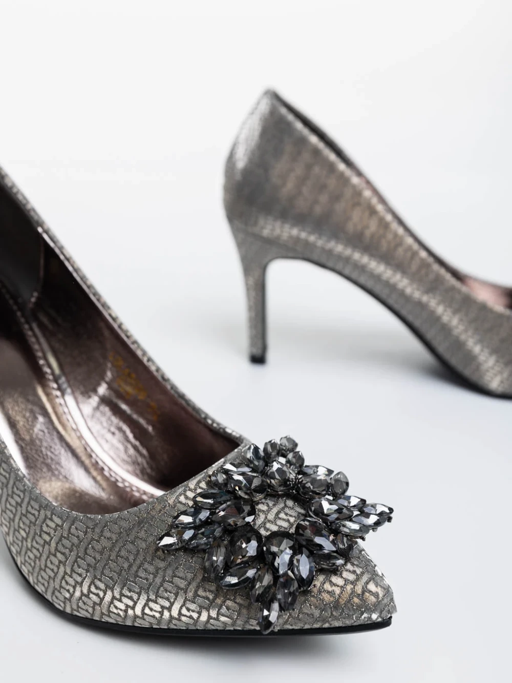Friera szürke női magassarkú cipő textil anyagból Termék leírás