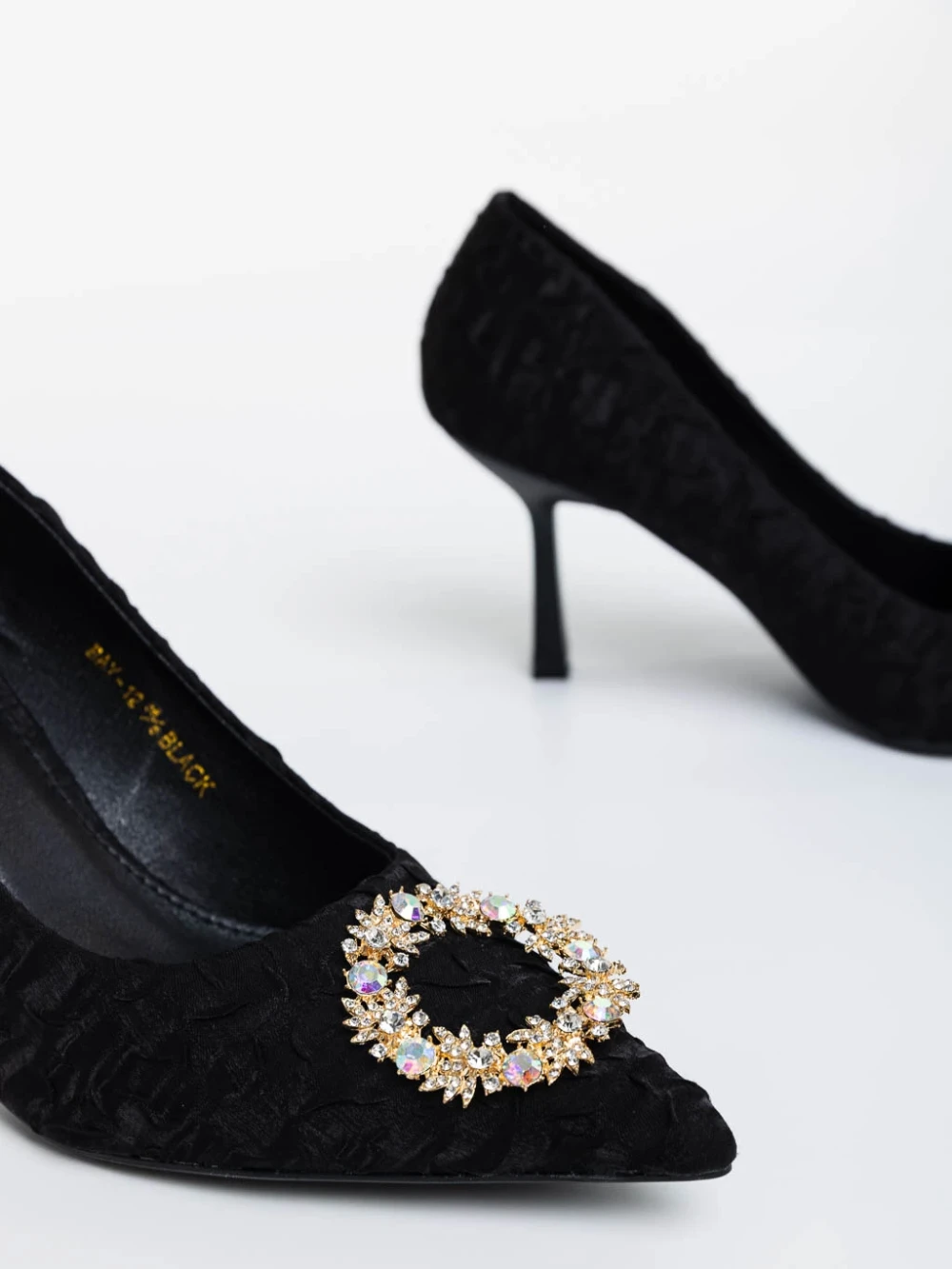 Aneisha fekete női magassarkú cipő textil anyagból Termék leírás