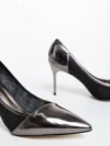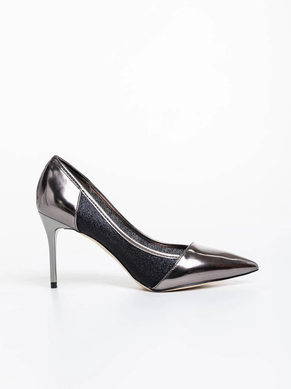 Tanishka sötét ezüstszínű női magassarkú cipő ökológiai bőrből és textil anyagból