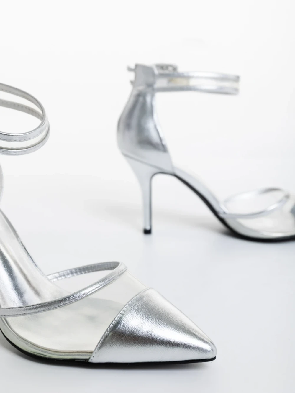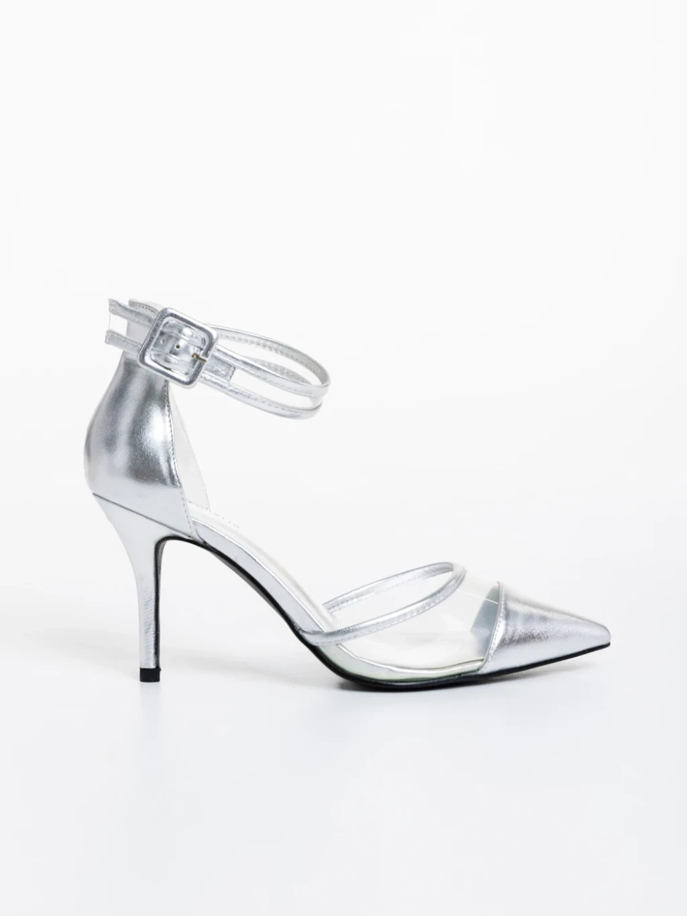 Floriette ezüstszínű női magassarkú cipő textil anyagból Termék leírás