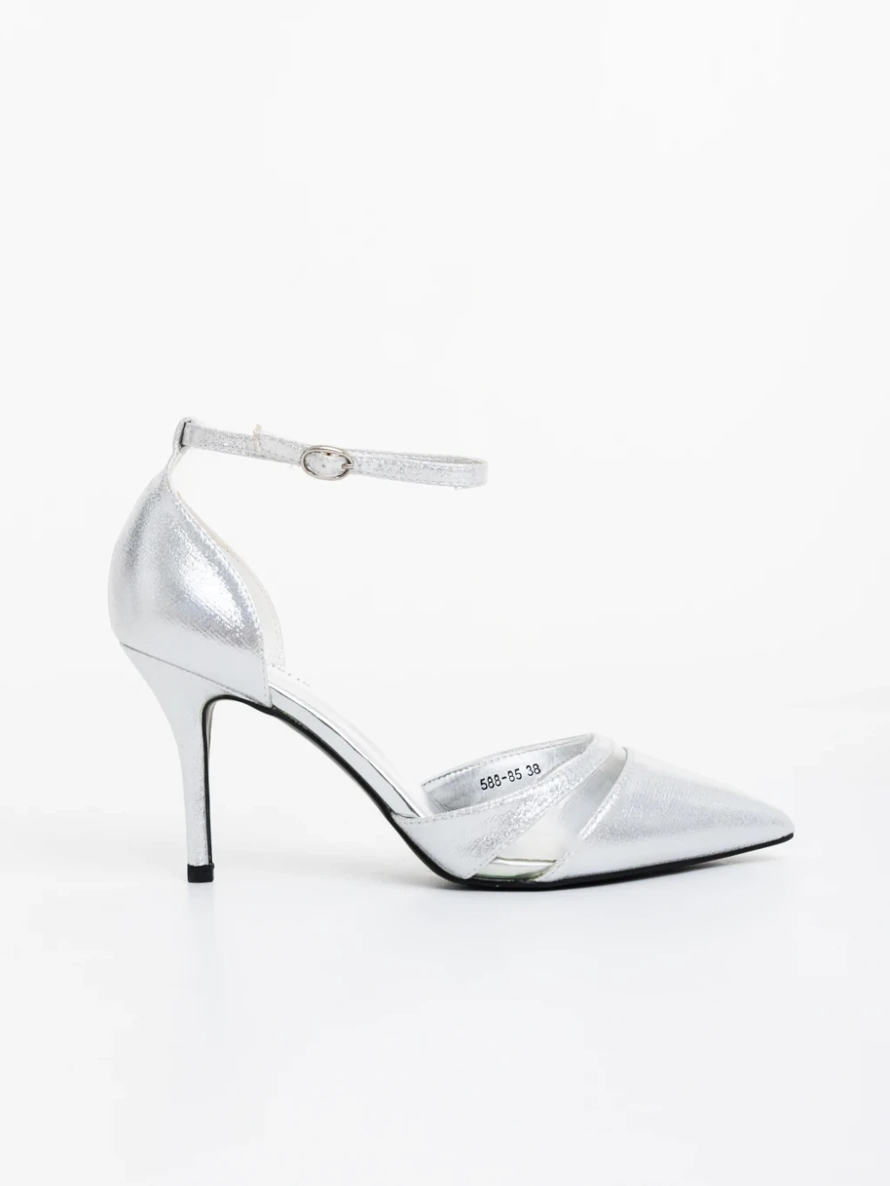 Armara ezüstszinű női magassarkú cipő textil anyagból Termék leírás