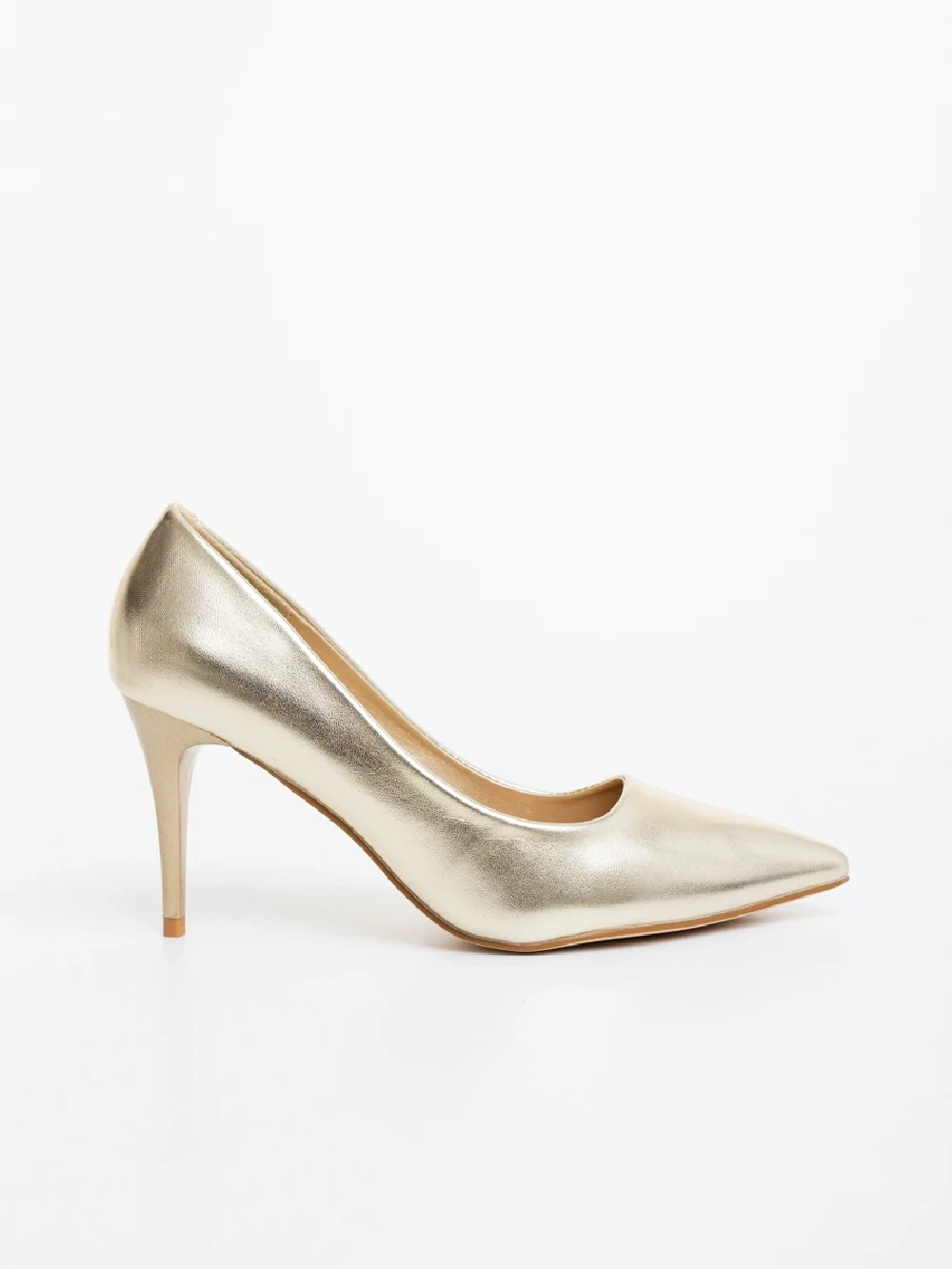 Namura aranyszinű női magassarkú cipő lakkozott ökológiai bőrből